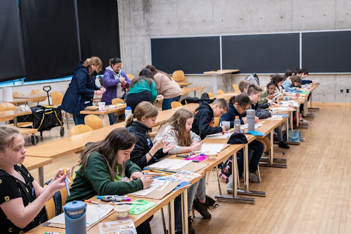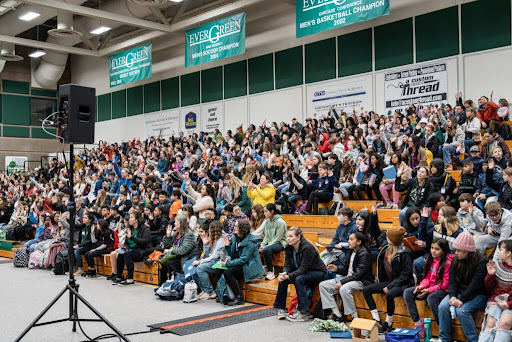 On the first day of Spring as the sound of rain fills the air around The Evergreen State College, so too does the sound of hundreds of eager elementary and middle school students as they make their way to the gymnasium. The students and their teachers, prepared and excited for what the day will bring, don’t let the rain showers dampen their spirits in the slightest as student MC’s Betsy and Petra from Reeves Middle School welcome their peers and introduce John the Falconer to give the keynote address. As the massive wings of a turkey vulture unfurl, the excitement is tangible in mouths agape and shouts aplenty. John welcomes everyone by sharing about the importance of conservation for birds and all animals in our environment, including humans, just before eliciting an even bigger reaction from the crowd as he feeds the vulture a dead mouse. Thus begins the 32nd Annual Student GREEN Congress!