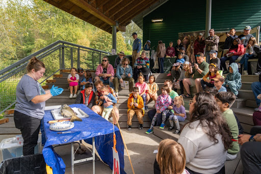 As the theme of this year’s festival was “Salmon of the Watershed,” beautiful artwork by local students is on display and families are seen celebrating their award-winning artists with fair food and salmon plates alike. Any fears that earlier fish dissections will ruin appetites are quickly put to rest, and with music drifting over to the tables, it’s a welcome reprieve before attendees jump back into the next activity awaiting them – perhaps a chance to win even more orca trading cards!
