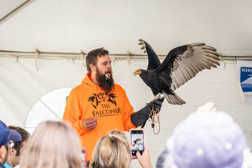 Just a little way from these tents, the Refuge’s education center bursts with excitement as kids and parents alike let out their inner child while holding geckos, looking at snakes, and examining giant bugs in the “Insect Extravaganza”. This return to the wonders of youth continues as percussion and samba dancing lights up the mainstage followed by the Falconer bringing out an array of ever larger birds of prey! As kids practically jump out of their seats, craning their necks to see each bird devour a mouse in its own unique fashion, the curious eyes of owls and vultures look out into the crowd with impressive wingspans large enough to match their mighty beaks and talons.