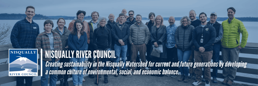 The Nisqually River Council (NRC) has pursued sustainability in the Nisqually Watershed since its creation in 1987. The oldest watershed council in the Western United States, the NRC is a nationally-recognized model of collaborative local conservation, bringing together the watershed’s stakeholders around a shared vision that balances the rights of private landowners, statewide public interests, access to the river, tribal fishing rights, and protection and recovery for fish and wildlife species.